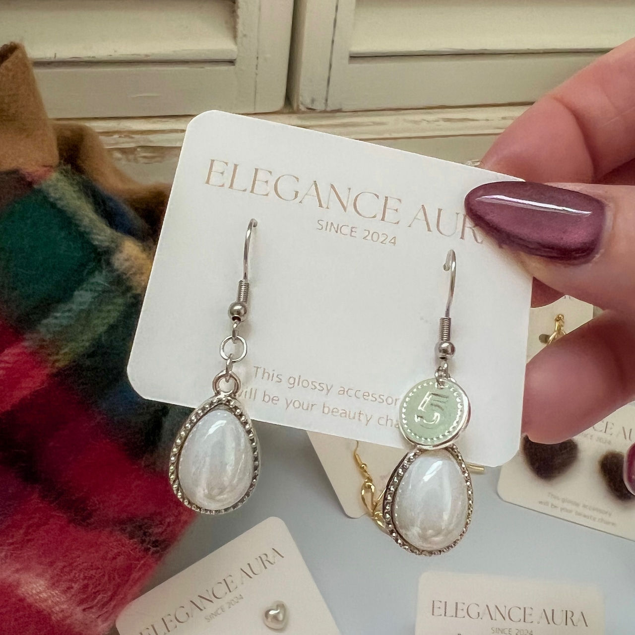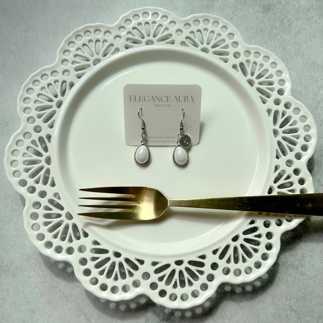 艶やかなホワイトドロップが耳元で揺れる