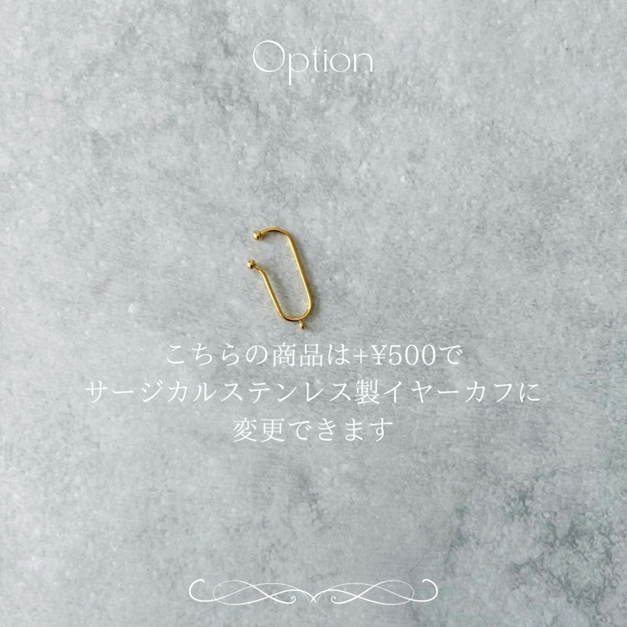 イヤリング(無料)またはイヤーカフ(+¥500)に