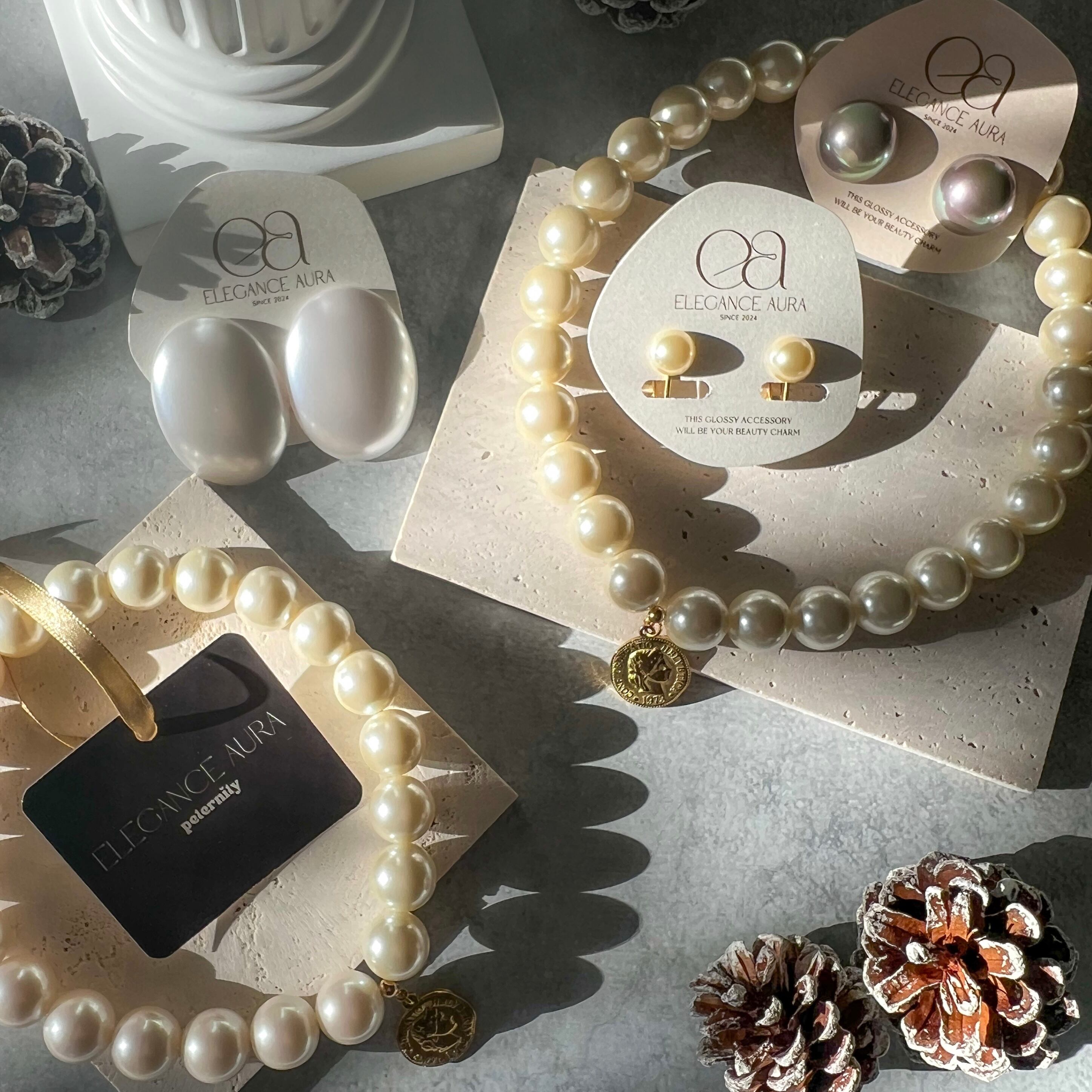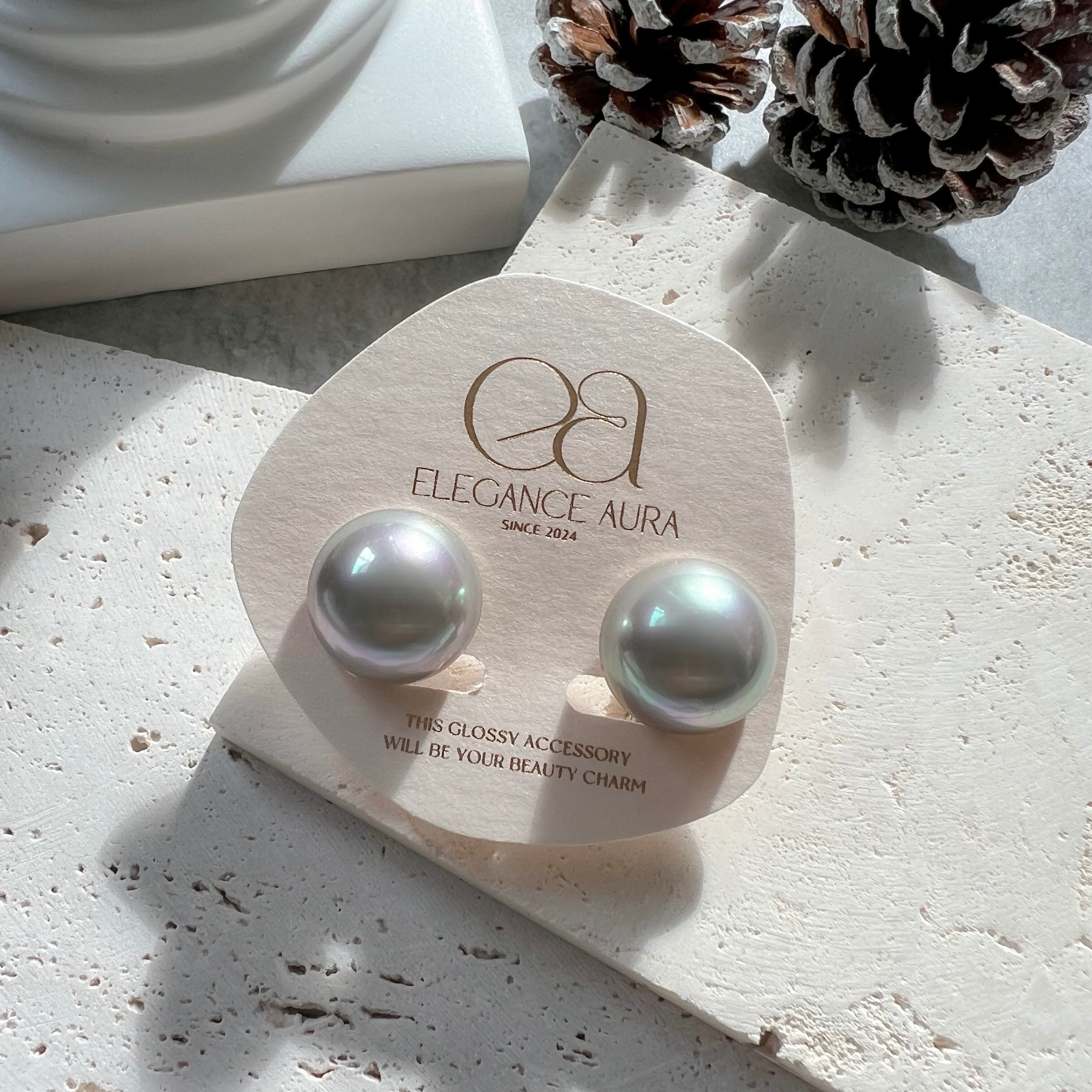 マシュマロパール シルバーグレーピアス(イヤリング)