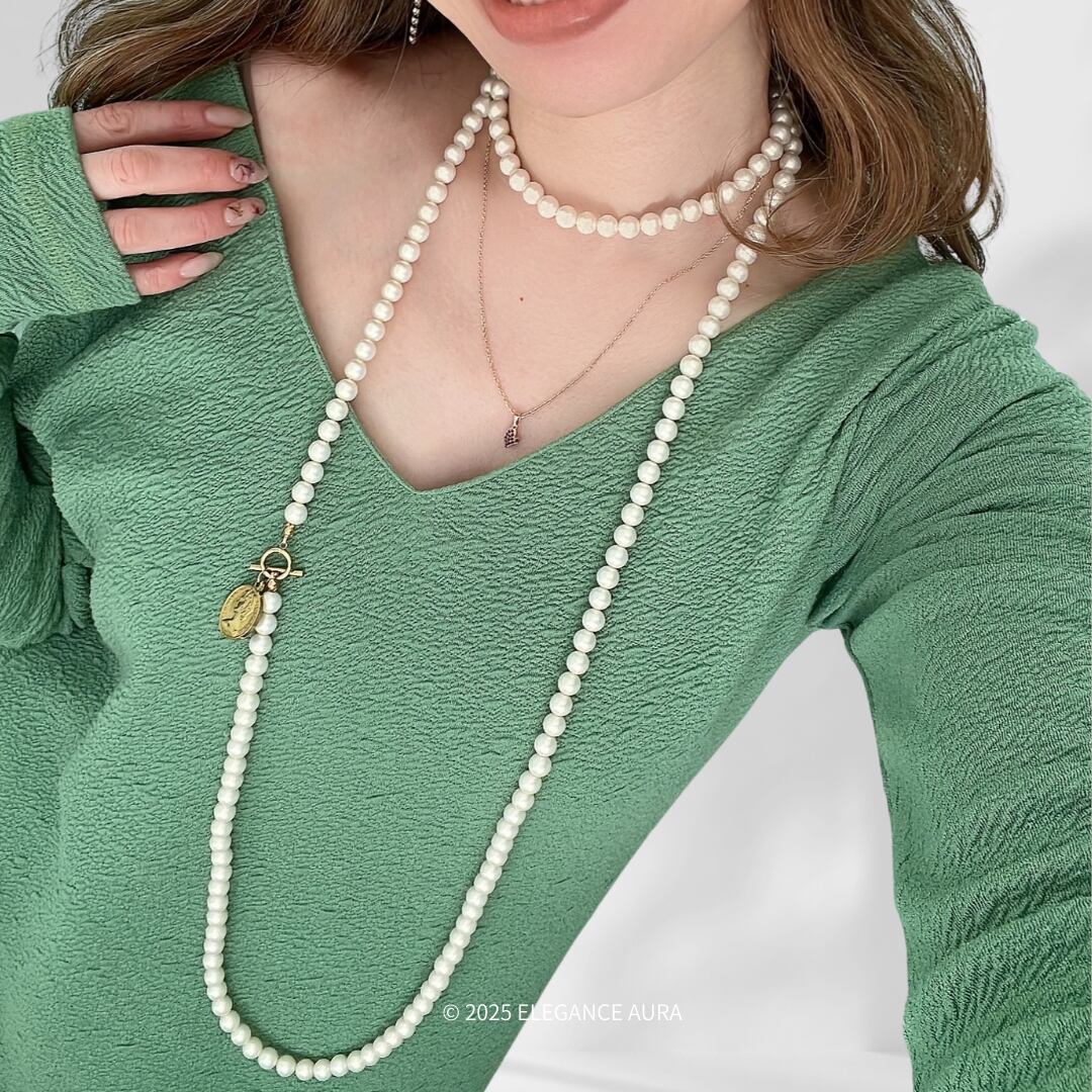 7WAYで楽しめるロングパールネックレス。