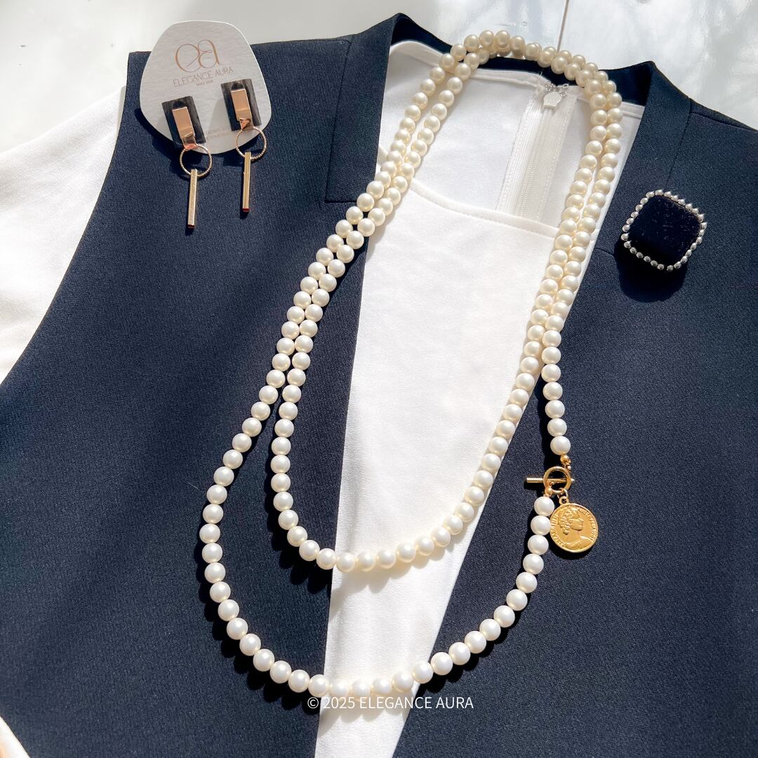 上品なパールにアンティークなコインチャームがポイント。