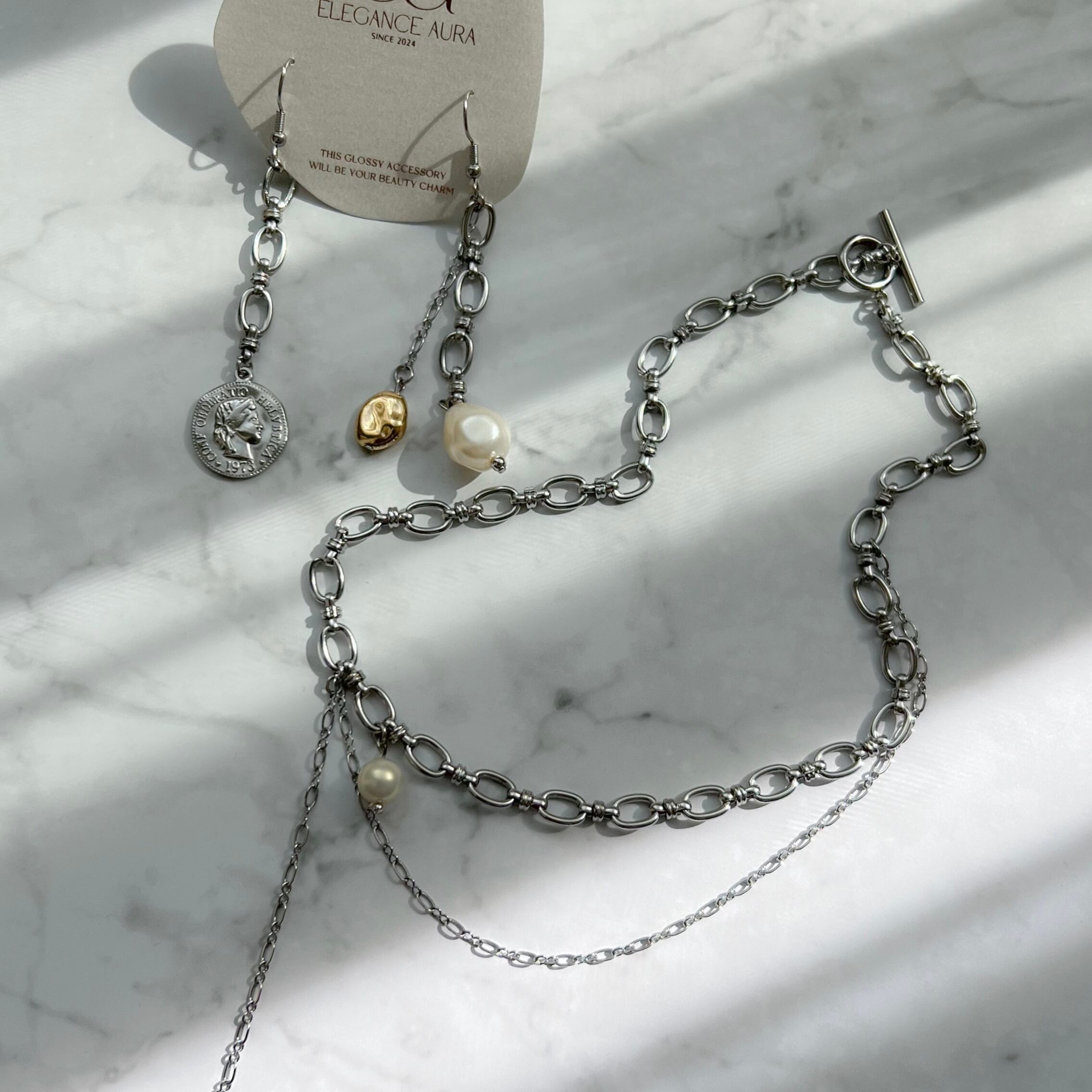 ゴツめのチェーンに華奢なメビウスチェーンと
