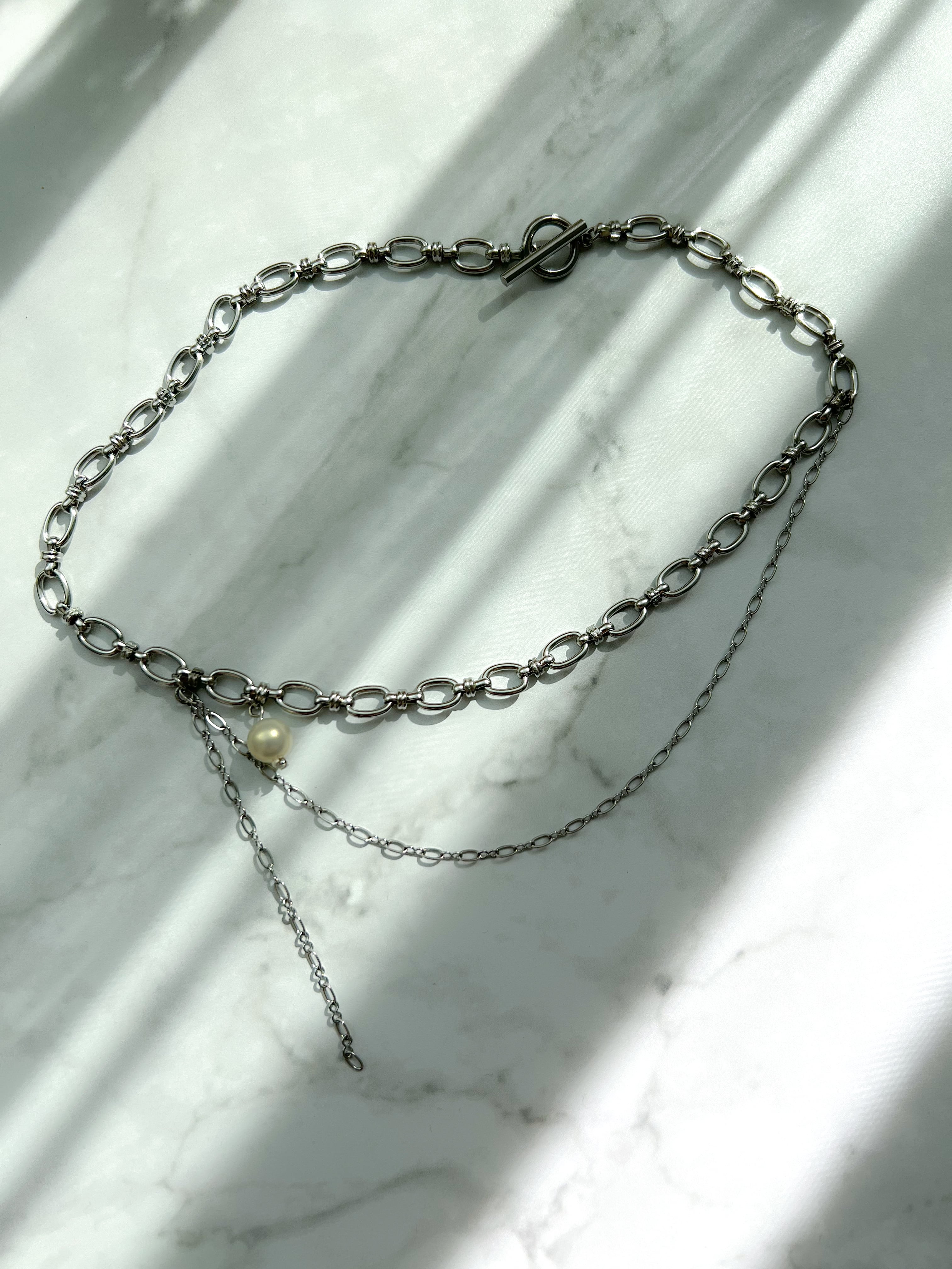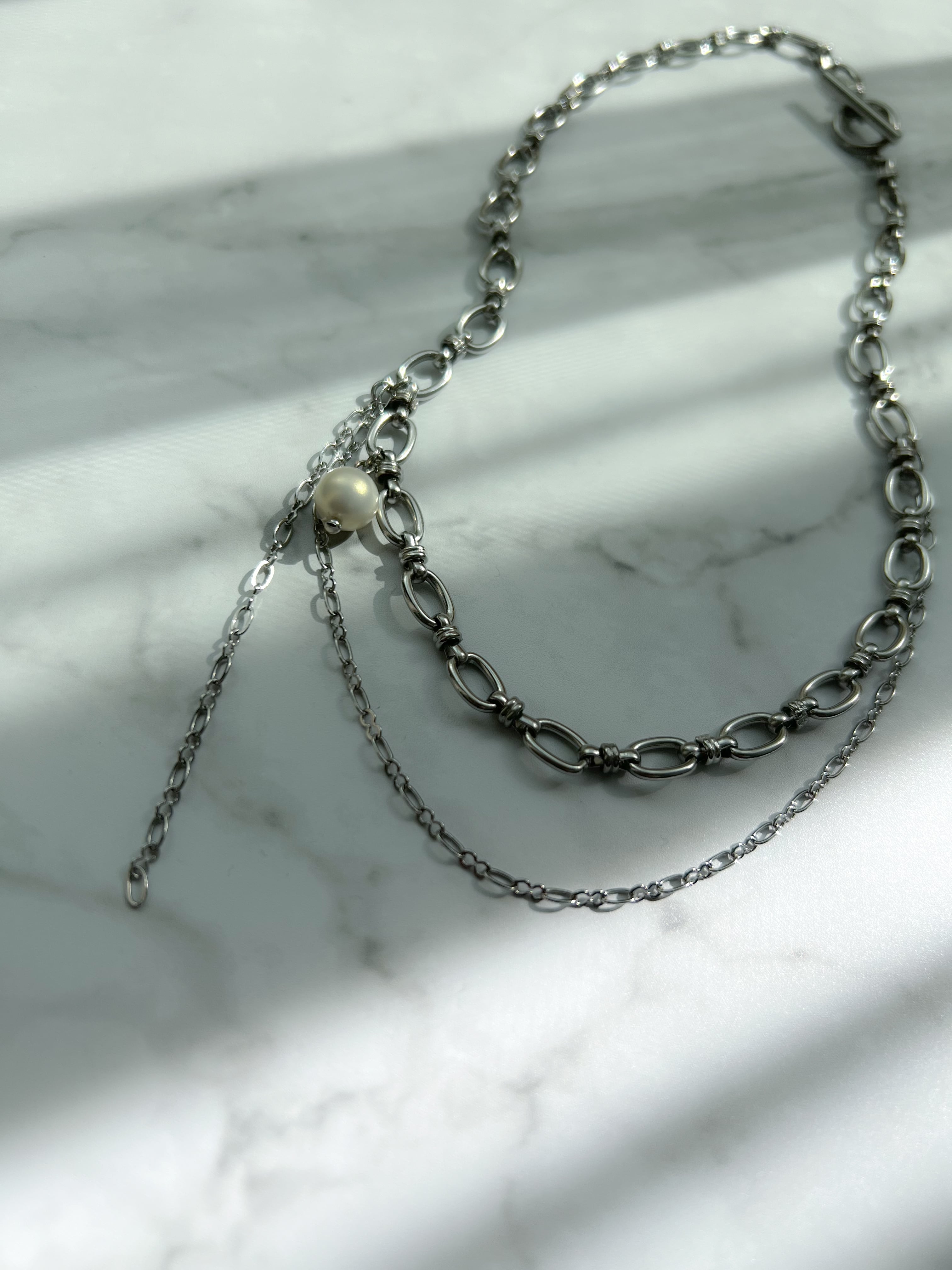 【長さが選べるネックレス】ヴィンテージチェーン2連パールネックレス
