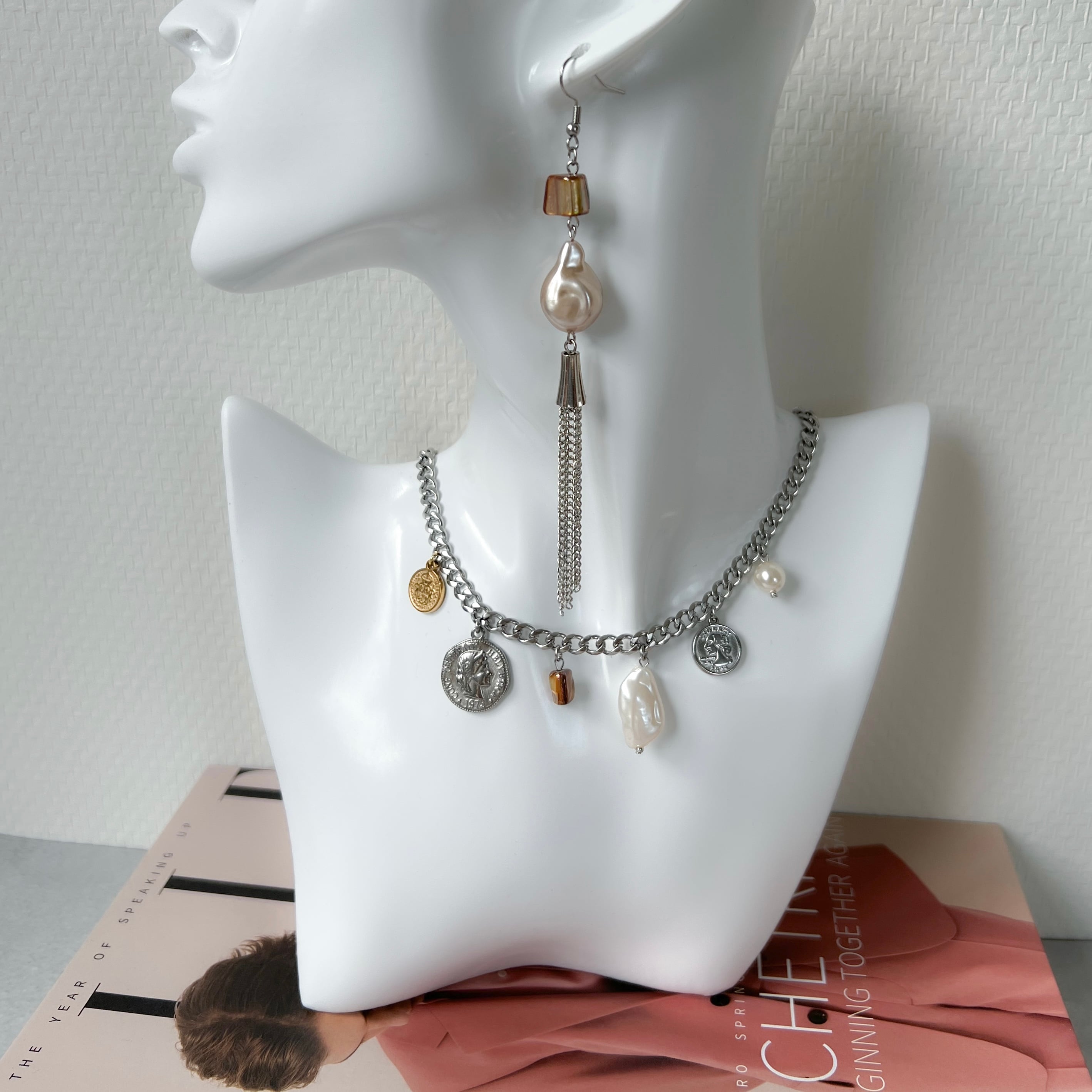 同シリーズのモカパールタッセルピアス(イヤリング)