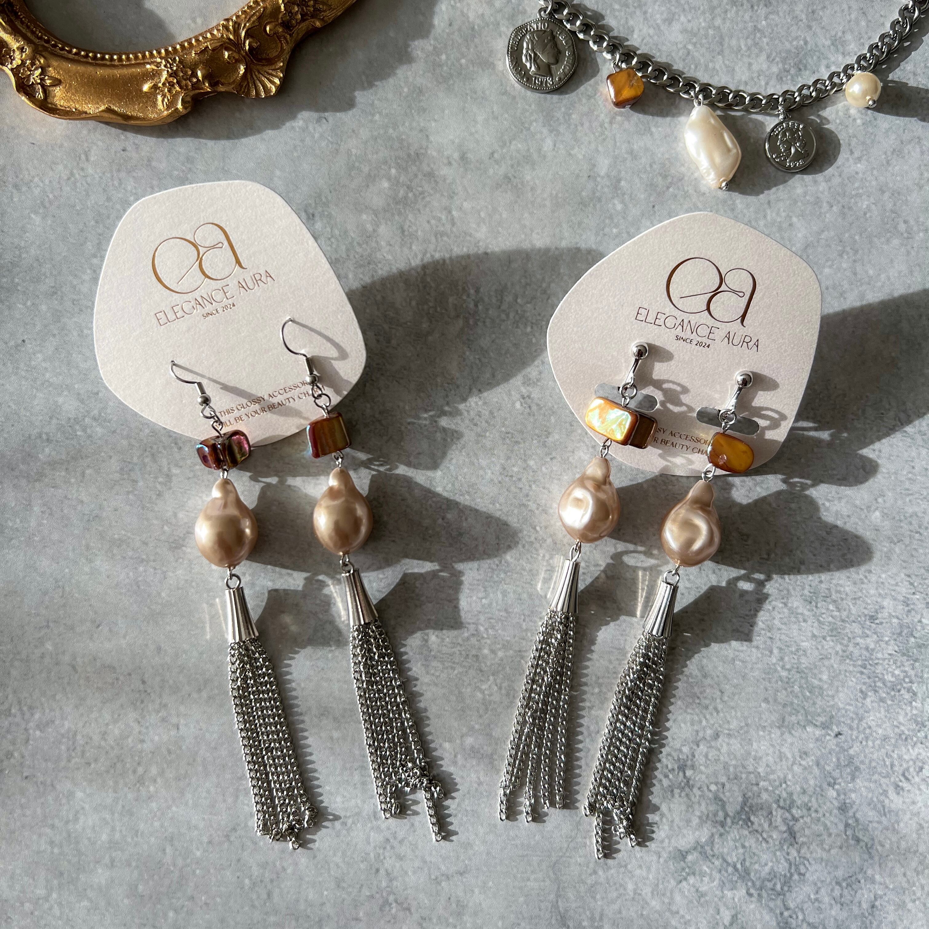ヴィンテージ感漂うパールやコインチャームを